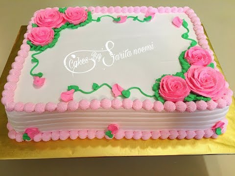 BEAUTIFUL CAKE FOR A GIRL | DECORACION SENCILLA DE PASTEL CON ROSAS | PRICIPIANTES | MEDIA PLANCHA - Pasteles Para Mujer Modernos Cuadrados